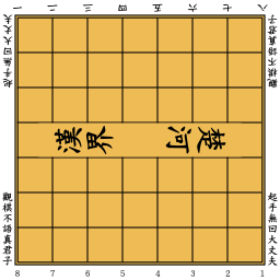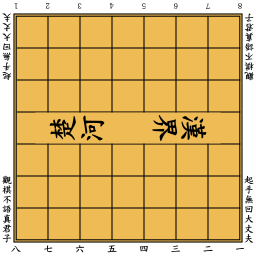 The board SVG files are adaptations of the Xiangqi board originally created by Wj654cj86 and released into the public domain on Wikimedia Commons: File:Xiangqi_board.svg